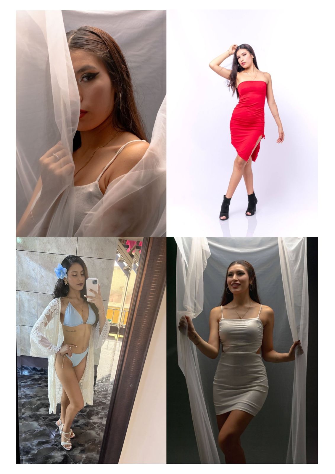 ["Sesión de fotos", "Sesión de fotos en ropa sport, casual, elegante", "Sesión de fotos en traje de baño", "Desfile de Moda", "Anfitrión(a)", "Impulsadora", "Promotora", "Activaciones", "Animador(a) de eventos", "Conductor(a) de programa de televisión", "Reportero(a)", "Bailarín o Bailarina Amateur", "Grabación de Novelas o Películas", "Grabación de Video Publicitario para redes sociales", "Grabación de Video Clip Musical", "Grabación de Video Corporativo", "Maquillaje"]